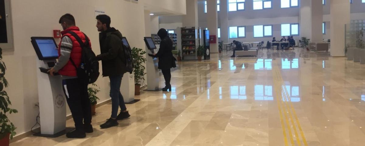 Kütüphane içinde kullanıcı ve kütüphane görevlisinin iletişimini ve eksikleri en aza indirmek amacıyla kitap giriş çıkışları, kütüphane girişinde alınan kartlar ve kartların üzerindeki şifreli barkod üzerinden gerçekleşiyor. Her kata ayrıca yerleştirilen danışma ofisleri de ziyaretçilerin sorun ve istekleri için hazırda bekliyor. Önümüzdeki yıl faaliyete geçmesi beklenen Radyo Frekans ID sistemi ile kullanıcıların, üniversite kimlik kartlarının değiştirilmesi ve kütüphane sistemi ile tüm kullanıcıların bilgisayar üzerinden takip edilebilecek. Sistemin veri tabanında var olduğu kart değişimi ile birlikte kullanıcıların raftan izinsiz bir şekilde kitap dahi alamayacak ve her şeyin kayıtlar dahilinde gerçekleşecek.