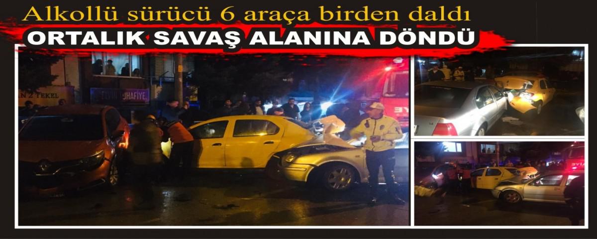 Alkolü sürücü park halindeki 5 araça 1 de motosiklete çarparak durabildi. Ortalık savaş alanına döndü.