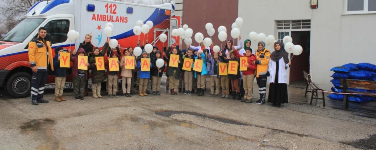 Eğitimin sonunda çocuklar “Yaşama Yol Ver” pankartlarıyla farkındalık oluşturdular. Elif Erdoğan