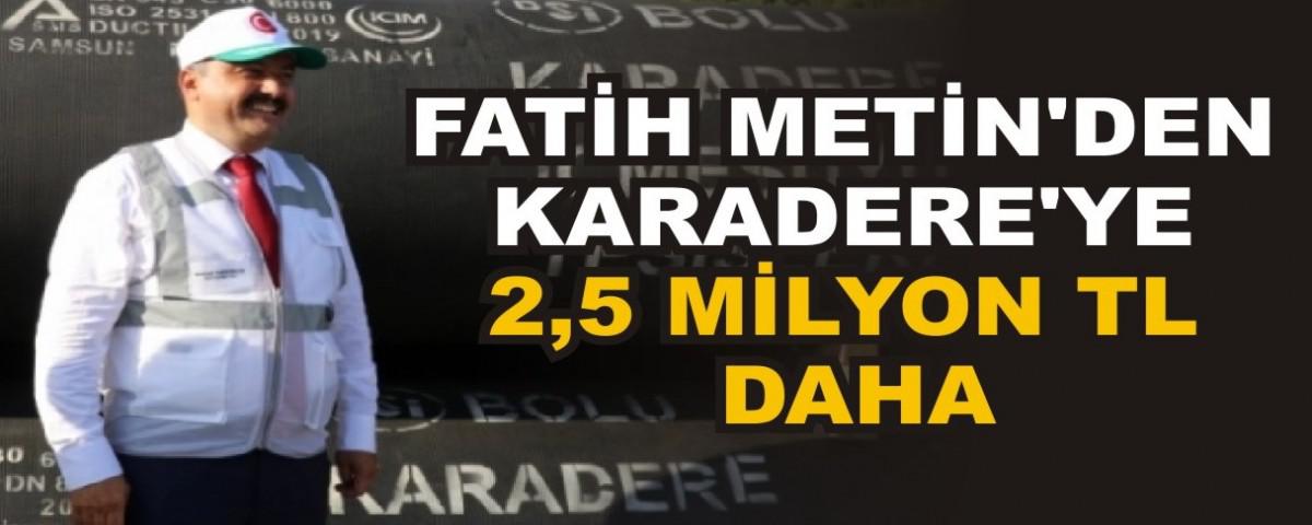 Bakan Yardımcısı Metin, bu hafta içerisinde Karadere Suları Projesine ilave 2,5 Milyon TL daha ödenek gönderilmesini onaylayarak, projeye desteğini bir kez daha göstermiş oldu. Tarım ve Orman Bakan Yardımcısı Fatih Metin yaptığı açıklamada, “Siyaset halka hizmet için yapıldıkça varlığına değer katar. Biz de 17 yıllık iktidarımızda bu ilkeden asla vaz geçmedik. Öznemiz Bolu olduğu müddetçe, siyasette bulunmamızın kıymeti vardır. Yoksa kişisel hırs ve menfaatlerle, ne memleketimiz bir şey kazanır, ne de şahsiyetlerimiz.