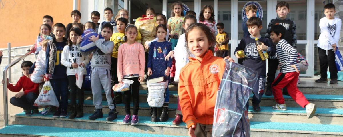 Anlamlı proje kapsamında öğrenciler tarafından toplanan muhtelif gıda maddeleri ile pantolon, kazak, mont, ayakkabı, bot gibi eşyalar okula gelen belediye ekiplerince teslim alındı. Minik öğrenciler, teneffüs arasında topluca okul bahçesine inerek, bağışta bulundukları gıdaları ve eşyaları görevli ağabeylerine teslim ettiler. Öğrencilere öncülük eden öğretmenlerden 2/D Sınıf Öğretmeni Emel Çalışkan, yaptığı açıklamada, etkinliği 50. Yıl İzzet Baysal İlkokulu 2’nci sınıf zümresi olarak gerçekleştiklerini söyledi.
