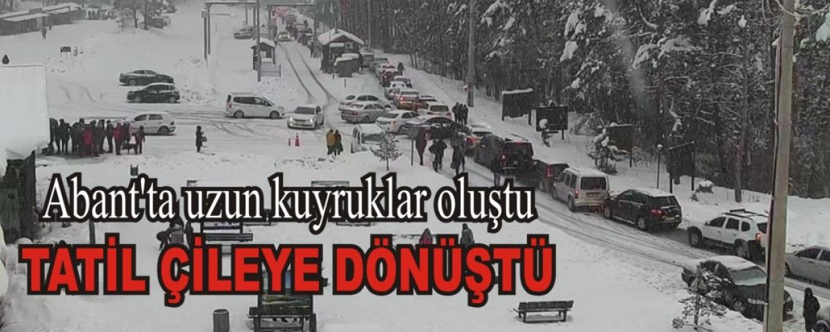 Türkiye’nin ve Bolu’nun önemli turizm noktalarından olan Abant Tabiat Parkı, yeni yıl tatilini doğa ile geçirmek isteyen yüzlerce vatandaşı ağırladı. Yeni yıla Abant’ta giren vatandaşların, dönüş yolu ise çileye döndü. Akşam saatlerinde kar yağışının etkisini göstermesi ve bazı araçlarında kış lastiği takmaması sebebiyle maddi hasarlı kazalar meydana geldi. Yer yer sıkışık trafik yüzünden uzun araç kuyrukları oluşurken, tabiat parkı yolunda önlem alan jandarma ekipleri, kar lastiği olmayan araçları geri çevirdi. Kar nedeniyle bazı araçlar çekici yardımı ile taşındı.