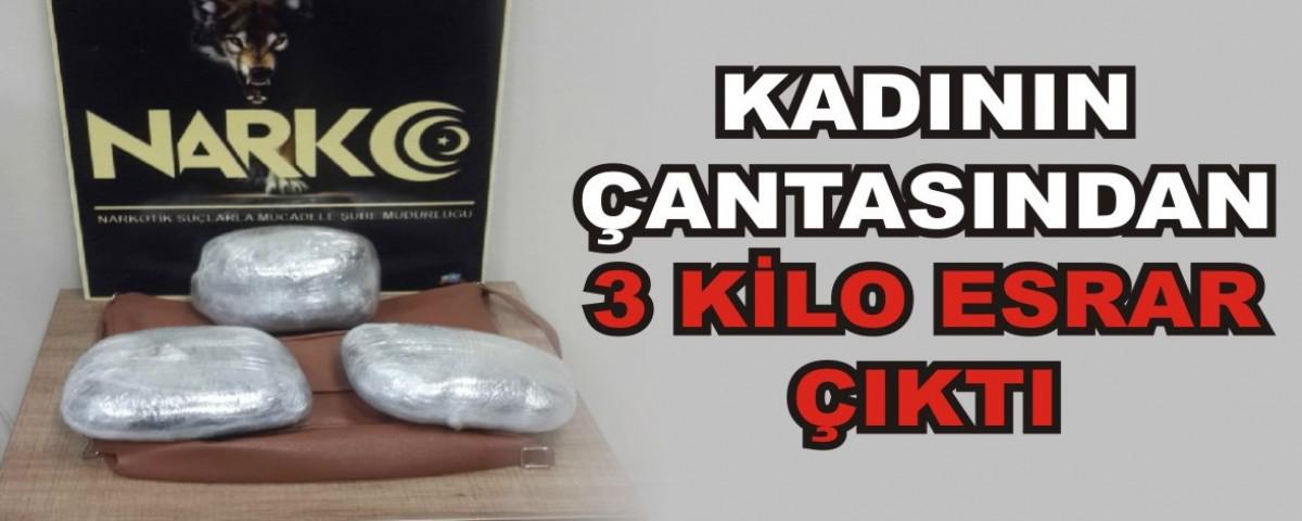 Alınan bilgiye göre, Bolu Emniyet Müdürlüğü Narkotik Suçlarla Mücadele Şube Müdürlüğü ekiplerince 06.01,2020 günü saat 06.30 sıralarında yapılan çalışmalar neticesinde yolcu otobüsü içerisinde bulunan S.A.E bayan isimli şahsın yanında bulunan çanta içerisinde 3 parça halinde toplam daralı ağırlığı 3 kilo 894 gram TOZ ESRAR maddesi ele geçirildi. Gözaltına alınan şüpheli bayan uyuşturucu madde ticareti suçundan adliyeye sevk edildi.