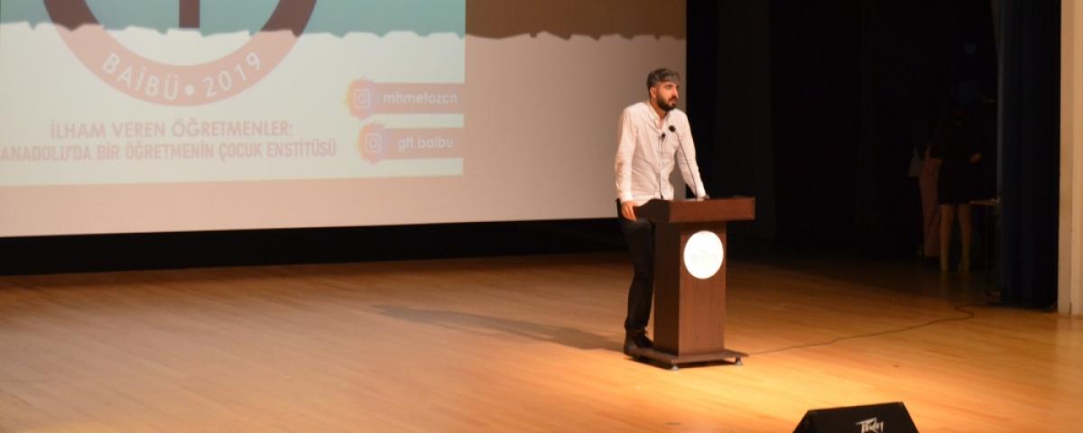 BAİBÜ Genç Fikirler Topluluğu tarafından “İlham Veren Öğretmenler” başlığıyla düzenlenen ve Doğu bölgesine fotoğrafçılık sanatı ile uğraşıp aynı zamanda öğretmenlik yaparak bölgedeki çocuklara yardım ederek, Türkiye’deki herkesin gönlünü fetheden Mehmet Özcan’ın konuşmacı olarak katıldığı konferans düzenlendi. BAİBÜ Kültür Merkezi Mavi Salon’da düzenlenen konferansa İletişim Fakültesi öğretim üyeleri, topluluk öğrencileri ve çok sayıda üniversiteli katıldı.