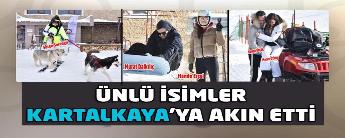 Köroğlu Dağları’nın zirvesindeki Türkiye’nin ve Bolu'nun önde gelen kayak merkezi Kartalkaya, hafata sonu ünlülerin akınına uğradı. Evindeki merdivenlerden düşerek ayağını kıran şarkıcı Merve Özbey nişanlısı Kenan Koçak ile Hande Erçel, sevgilisi Murat Dalkılıç ile Kartalkaya’da kayak yaparak karın ve manzaranın tadını çıkardılar.