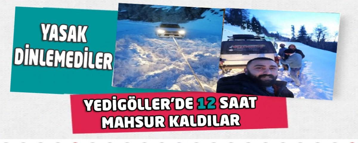 İstanbul’dan geldiği öğrenilen ve giriş yasak olduğu için Yedigöller’e başka yollardan gitmeyi deneyen bir pikap ile içerisinde bulunan 3 kişiyle birlikte Ayı Kayası mevkiinde tam 12 saat mahsur kaldı. 2 bin metre yükseklikte kalan vatandaşlar kurtulmak için çekici aradılar. Fakat çekiciler oraya çıkamayacaklarını söyleyerek Köroğlu Off Road kulübü kurucusu Emre Bozkurt ve arkadaşlarına haber verdiler. Off road araçları mahsur kalan vatandaşların bulunduğu bölgeye giderek uzun süren bir çalışma neticesinde pikap ve içerisinde bulunan vatandaşları kurtararak geri döndüler. Bolu Gazetesi