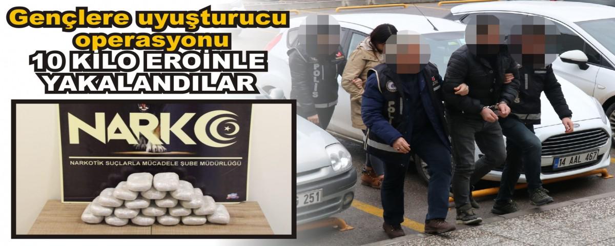 Edinilen bilgiye göre, İl Emniyet Müdürlüğü Narkotik Suçlarla Mücadele Şube Müdürlüğü ekipleri, araç içerisinde uyuşturucu taşındığı yönünde bilgi aldı. Gelen istihbaratı değerlendiren polis ekipleri, operasyon düzenleyerek, aracı durdu. Araç içinde yapılan aramalar sonucunda 10 kilo 158 gram eroin ele geçirildi. Araçta bulunan 25 yaşındaki Ş.D. ve 24 yaşındaki kadın A.A. yakalanarak, ifadeleri alınmak üzere emniyete götürüldü.