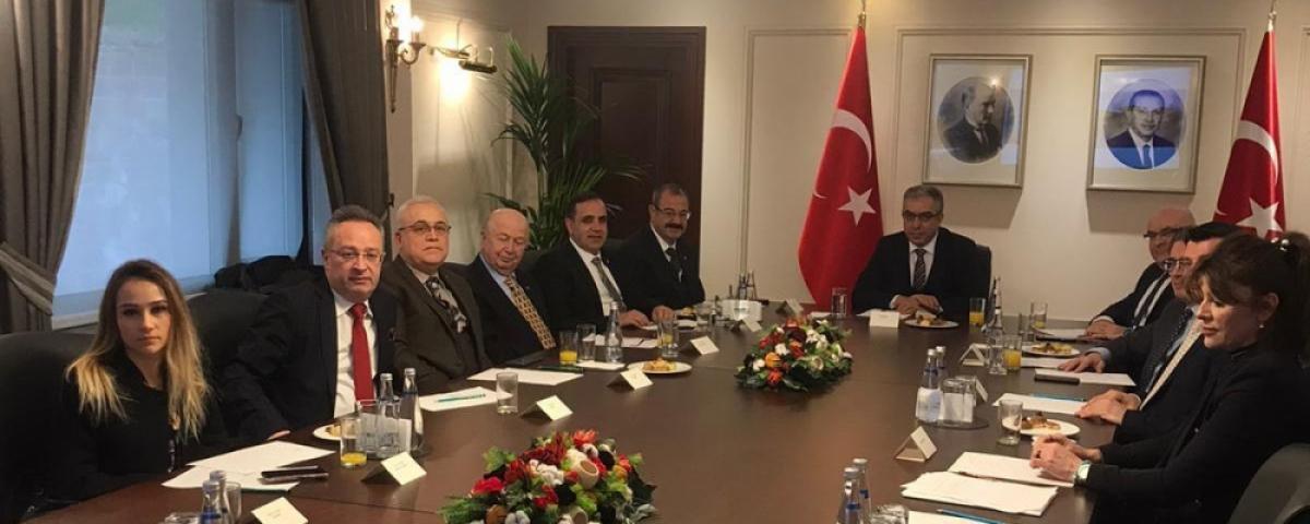Cumhurbaşkanlığı Hukuk Politikaları Kurulu Başkan Vekili Mehmet Uçum’un başkanlığında, Hukuk Politikaları Kurulu Üyeleri Uğur Kızılca ve Ömer Serdar Atabey’in de iştirakiyle gerçekleştirilen toplantıda tahkim hukukuna ilişkin karşılıklı bilgi ve görüş alışverişinde bulunuldu.
