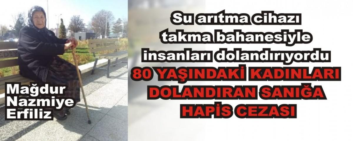 Bolu’nun Kıbrıscık ilçesinde, 84 yaşındaki Nazmiye Erfiliz ve 80 yaşındaki Huriye Mamur’u, su arıtma cihazı takacağım diyerek toplam bin 470 TL dolandıran Emrah Akgül, 6 yıl 8 ay hapis ve 2 bin 280 TL adli para cezasına çarptırıldı.