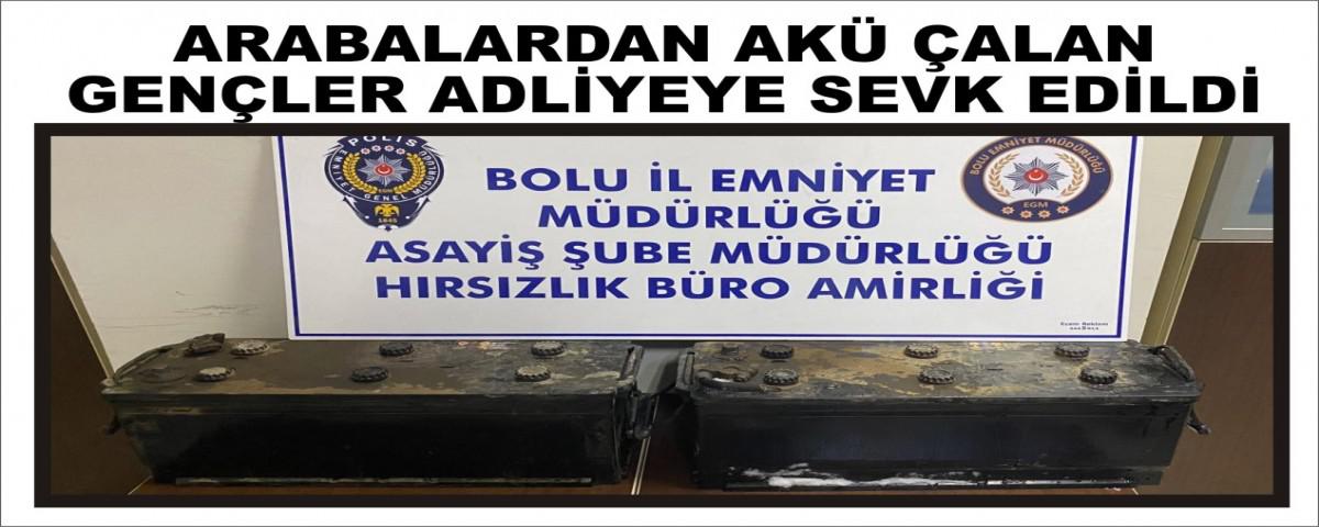 Edinilen bilgiye göre, Bolu’nun Aktaş mahallesi Şehit Osman Çatana sokak üzerinde park halindeki 2 aracın aküsü çalındı. Araç sahiplerinin şikayeti üzerine İl Emniyet Müdürlüğü Asayiş Şube Müdürlüğü Hırsızlık Büro Amirliği ekipleri çalışma başlattı. Polis ekiplerinin sokak üzerindeki kameraları incelemesi üzerine yapılan operasyonda F.E. (19), M.Y. (18), M.N. (18) çaldıkları aküleri satmalarının ardından yakalanarak gözaltına alındı. Aküler ise polis ekipleri tarafından sattıkları dükkandan alınıp, sahiplerine teslim edildi.