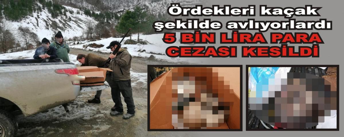 Bolu’da, kaçak bir şekilde ördek avı yaparken yakalanan 3 kişiye, 5 bin lira para cezası kesildi.