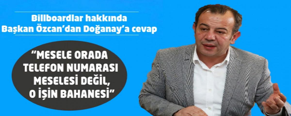 Bolu Belediye Başkanı Tanju Özcan Bolu Belediyesi tarafından asılan ve Ak Parti İl Başkanı Nurettin Doğanay’ın kullandığı telefon numarasının yer aldığı billboardlar hakkında açıklamalarda bulundu. Konun özünün saptırıldığını ve Nurettin Doğanay’ın numarasına yayınladığı için kendisine teşekkür etmesi gerektiğini belirten Başkan Özcan, “Telefon numarası herkeste olması lazım saten iktidar partinin il başkanının. Ben kendi numaramı herkese veriyorum. Niye bunu yaptın Nurettin Bey diye sorsun insanlar” ifadelini kullandı.