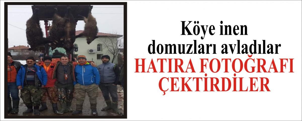 Bolu’nun Kıbrıscık ilçesinde, tarım arazilerine zarar veren 4 yaban domuzunu avlayan köylüler daha sonra da avladıkları hayvanlarla hatıra fotoğrafı çektirdi.