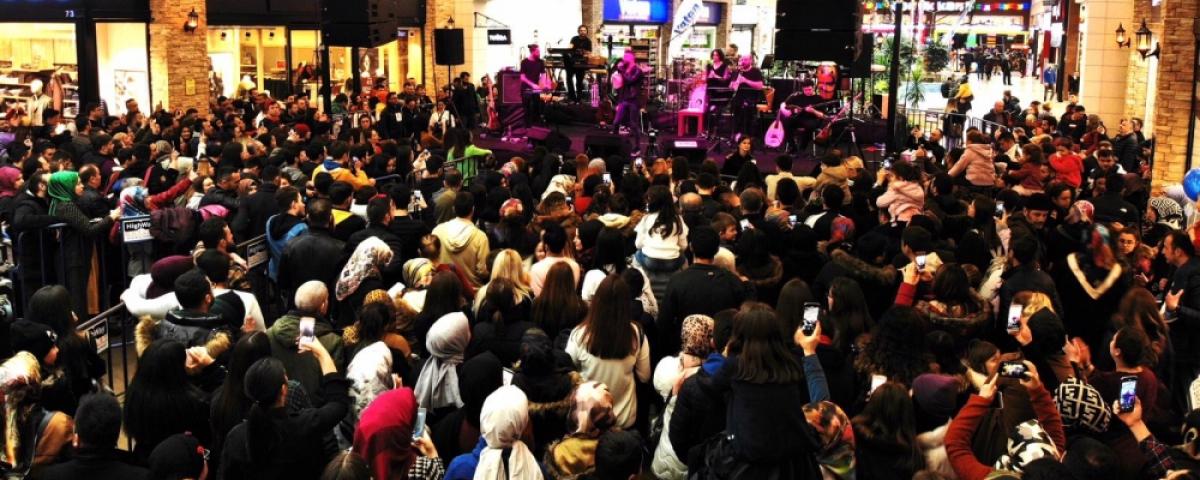 Dev orkestra eşliğinde en sevilen şarkılarını hayranları için seslendiren ünlü sanatçının akustik konserine ilgi büyük oldu. Konser alanı saatler öncesinden Tan Taşçı'nın hayranlarıyla dolup taşarken ünlü sanatçı saat 16.00'da sahnedeki yerini aldı. Alışveriş Merkezi ziyaretçilerinin yoğun izdihamı altında gerçekleşen akustik konserde, yaklaşık 1 buçuk saat boyunca Tan Taşçı ve 10 kişiden oluşan güçlü orkestrasının şahane performansı görülmeye değerdi.
