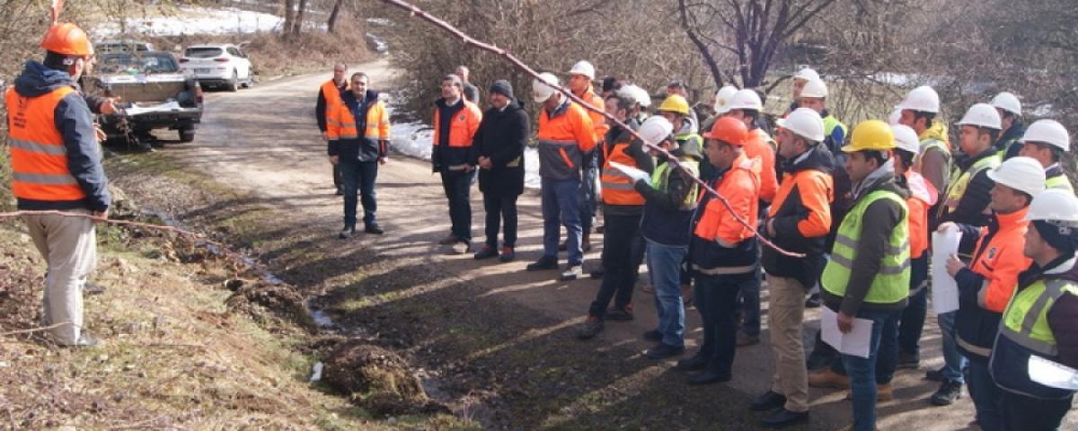 Tatbikat öncesi Mengen Orman İşletme Müdürlüğü Toplantı Salonunda gerçekleştirilen toplantıda, katılımcılara; Orman Yol Etüt işinin 292 Sayılı Orman Yollarının Planlanması Yapımı ve Bakımı Tebliğine göre irdelenmesi, Orman yolu etüdünün niçin gerekli olduğu, programa alınacak yolların hangi amaca yönelik seçilmesi gerektiği ile Yol etüt öncesi büroda yapılması gerekli teknik işleri içiren bir sunu takdim edildi. Müteakibinde arazi üzerinde tatbikat safhasına geçildi, Tatbikatta, haritanın araziye uygun yönüne konması, harita üzerine işlenen yol güzergahının araziye oturtulması, araziye aplike edilecek eğimin tespiti, Ölçüm Lata boyunun ayarlanması, klizimetre ile meyil okunması, yamaç meyili ve yamaç klaslarının tespiti ve tespitlerin Etüt karnesine işlenmesi çalışmaları her bir teknik elemana tatbik ettirilerek, yol etüt çalışması gerçekleştirildi.