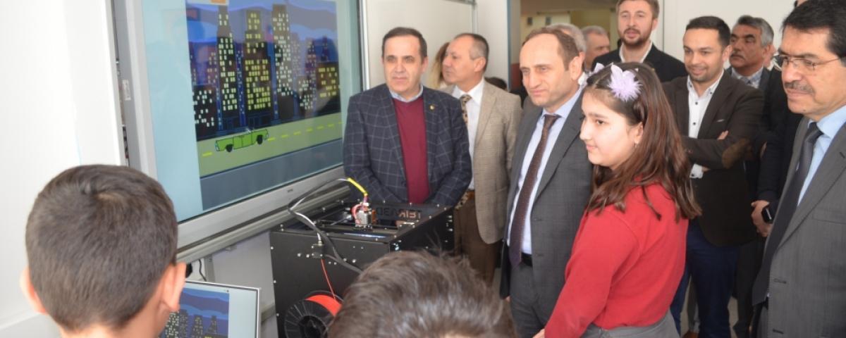 Programın devamında TOBB Bolu İl Genç Girişimciler Kurulu tarafından tefriş edilen ve içinde üç boyutlu yazıcının yanı sıra çeşitli donanım yer alan girişimcilik atölyesinin açılışı yapılarak öğrenciler tarafından geliştirilen projeler incelendi.