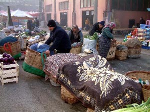 Soğuk hava nedeniyle üşüyen pazarcılar ile evlerinde yaptıkları süt ürünleri ve bahçelerinde yetiştirdikleri sebzeleri satmak için gelen köylü kadınlar, yaktıkları ateşin etrafında toplanarak ısınmaya çalıştı.