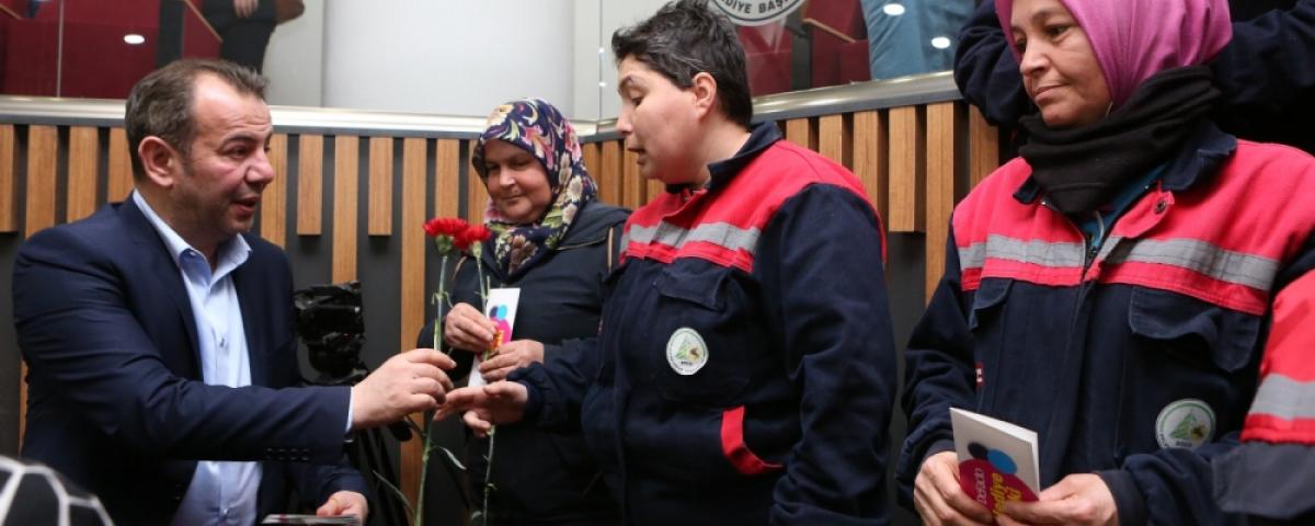 Yapılan konuşmaların ardından Bolu Belediye Başkanı Tanju Özcan ve eşi Meral Özcan salondaki kadın çalışanlara karanfil ve hediye çeki dağıtarak, 8 Mart Dünya Kadınlar Günleri’ni kutladı. Elif Erdoğan