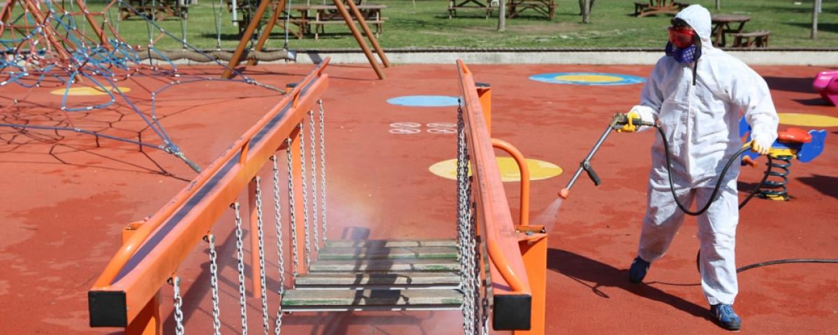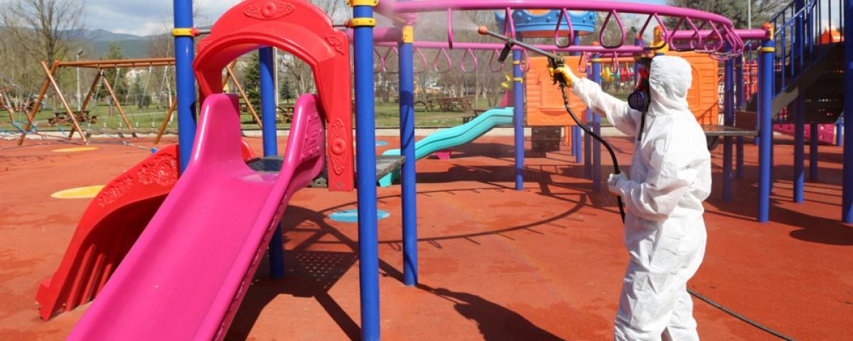 Özellikle insanların ortak kullanım alanları olan ATM, tuvalet, durak, otobüs ve özellikle çocuk parklarında gerçekleştirilen çalışmalar gece gündüz devam edecek.