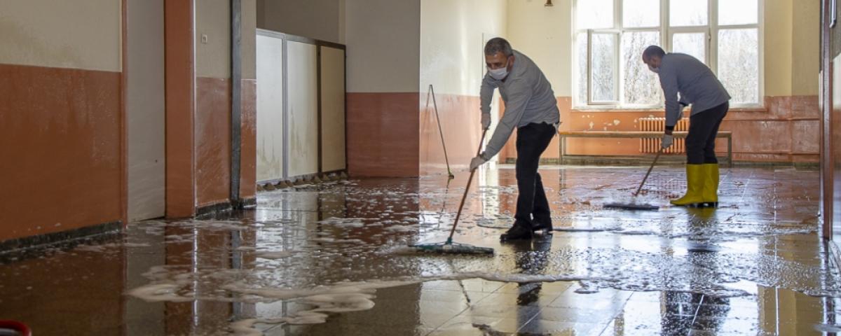 Koronavirüsün yayılmasını önlemek için ülke genelinde üniversiteler de dahil tüm okullarda eğitime ara verilen 16 Mart Pazartesi gününden bu yana, Bolu Abant İzzet Baysal Üniversitesi binalarında dezenfeksiyon işlemi yapılıyor. Bu kapsamda; fakülte, enstitü ve yüksekokul binaları, amfi, derslik ve laboratuvarlar, öğrenci yemekhaneleri, kültür merkezleri, daire başkanlıkları gibi birimleri ve toplu kullanım alanları dezenfekte edildi. Binalardaki panolara Sağlık Bakanlığı’nın koronavirüs uyarılarının ve doğru el yıkama talimatlarının yer aldığı duyurular asıldı; öğrenci ve personelin sıkça kullandığı alanlara dezenfektanlar konuldu. Elif Erdoğan