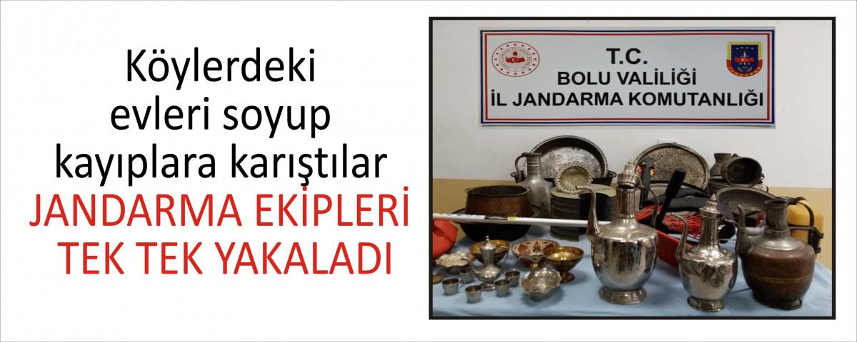 Bolu'da, 6 eve girerek 25 bin lira değerinde eşya çalan 4 şahıs, jandarma ekipleri tarafından yakalanarak adliyeye sevk edildi.