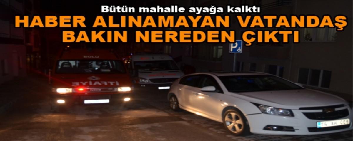 Olay, saat 22.15 sıralarında Bolu'nun Tabaklar mahallesi Reşat Aker sokakta meydana geldi. Edinilen bilgiye göre, 60 yaşındaki N.E.'den saat 13.00'ten bu yana haber alamayan oğlu durumu 112 acile bildirdi. Olay yerine Bolu Belediyesi'ne bağlı İtfaiye Müdürlüğü, ambulans ve polis ekipleri sevk edildi.
