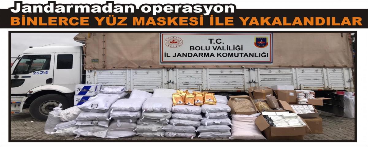 Edinilen bilgiye göre, İl Jandarma Komutanlığı ekipleri tarafından Bolu'nun Dörtdivan ilçesinde bulunan bir dinlenme tesisinde yol emniyet ve kontrol devriyesi yapıldı. Yapılan devriye esnasında 2 kamyonda yapılan aramada 3 ton 91 kilo ağırlığında kaçak tütün, 60 kilo kaçak pipo tütünü, 2 bin 170 adet kaçak sigara ve 4 bin adet cerrahi yüz maskesi ele geçirildi. Olayla alakalı 2 kişi, jandarma ekipleri tarafından ifadeleri alınmak üzere karakola götürüldü.