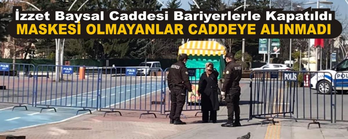 Bolu'da korona virüs salgınına karşı alınan tedbirler kapsamında kentin en işlek caddesi olan İzzet Baysal Caddesi'nin giriş ve çıkışları bariyerlere kapatıldı. Caddeye girmek isteyen vatandaşlar maske kontrolünden geçirildi. Maskesi olmayanlar vatandaşlar caddeye alınmadı.
