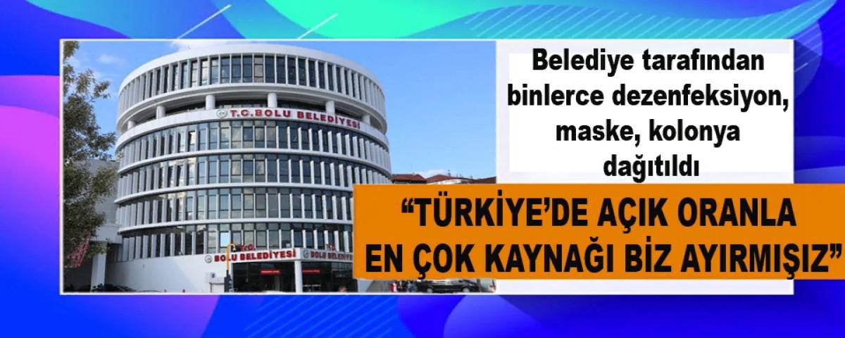 Bolu Belediye Başkanı Tanju Özcan, salgın sürecinde yaptıkları çalışmalar hakkında bilgi vererek, korona virüse karşı nüfusa oranla en çok kaynağı ayıran belediyenin, kendileri olduğunu söyledi.