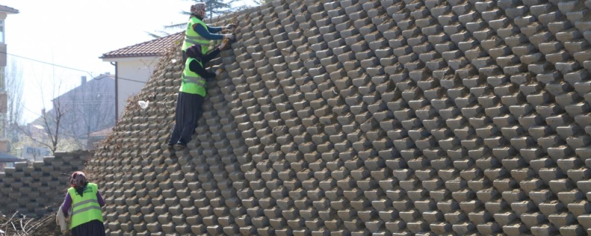 2 bin 400 metrekare alana inşa edilen parkta çalışmaları yerinde gören Başkan Özcan, koronavirüs salgınına rağmen çalışmalara devam ettiklerini belirterek, “Korona ile mücadele ettiğimiz şu günlerde, tüm halkımızı evde kalmaya davet ediyoruz. Biz hem korona ile mücadele ediyoruz hem de ekiplerimiz aralıksız olarak çalışıyor. Bakın burada ‘Balıklı Park' olarak nitelendirdiğimiz, Bolu'nun en çok ihmal edilmiş yerlerinden Karga Tepesi mevki burası. Buraya bir park inşa ediyoruz. Park ve bahçeler müdürlüğümüzde görevli personellerimiz burada kendi üretimimiz olan ve Bolu'da ilk kez kullandığımız şev taşlarını büyük bir titizlikle yerleştiriyorlar. Bunun içinden çiçekler çıkacak. Güzel bir parkı buraya kazandırmış olacağız. Bu parkın dışında 4 ayrı noktada daha park çalışmalarımız devam ediyor.” dedi. Elif Erdoğan