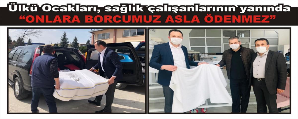 Ülkü Ocakları İl Başkanlığı, salgın sürecinde canla başla çalışan sağlık personeli için bin adet banyo ve bin adet baş havlusu bağışladı.
