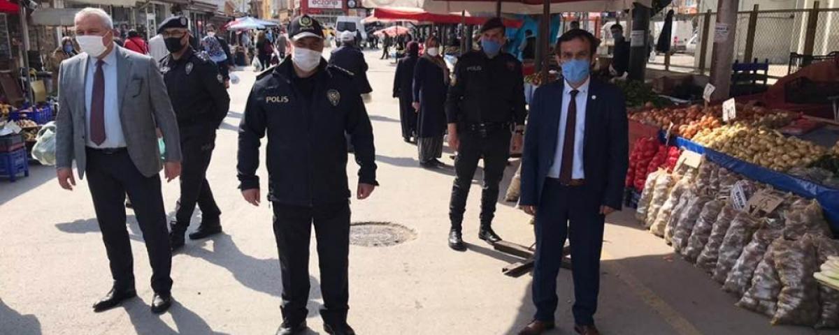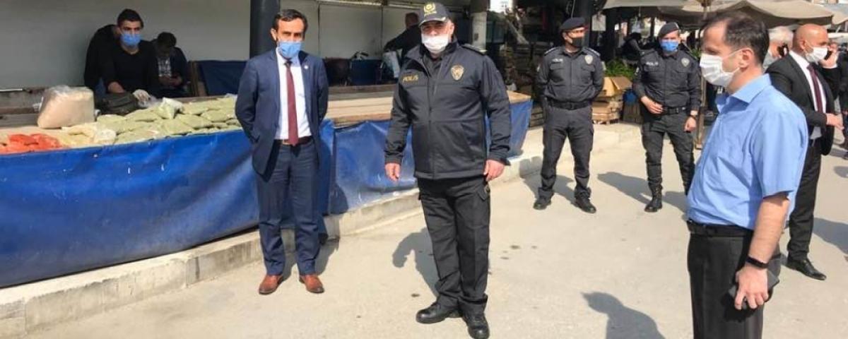 Alınan önlemleri denetlemek adına pazarı ziyaret eden İl Emniyet Müdürü Armağan Adnan Erdoğan, Bolu Manav ve Pazarcılar Odası Başkanı Mustafa Altındal ile bir araya geldi. Tezgâhları tek tek kontrol eden Erdoğan, pazar esnafı ve vatandaşlarla alınan önlemler hakkında da sohbet etti.