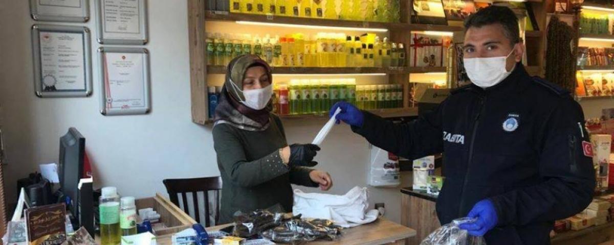 Bu kapsamda Belediye Başkanı Ahmet Çankaya'nın talimatları doğrultusunda belediye ekiplerince ilçe merkezinde vatandaşlara ücretsiz maske dağıtımı yapıldı. İlk etapta ilçe esnafına dağıtılan maskelerin belediye ekiplerince önümüzdeki günlerde tüm vatandaşlara ulaştırılacağı bildirildi.
