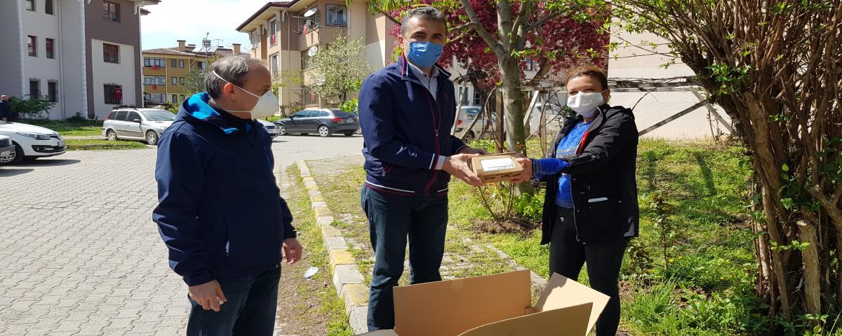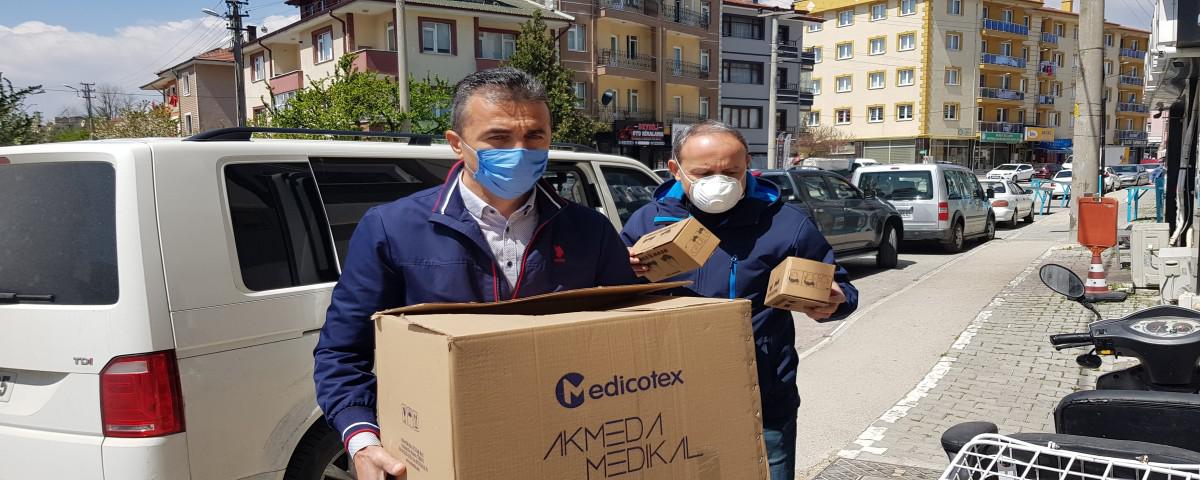 Bakan Yardımcısı Fatih Metin 60 bin maske daha gönderdi. Bolu'ya gelen maske kolilerini sırtlanan İl Başkanı Doğanay ve İlçe Başkanı Konak mahalle muhtarlarını tek tek ziyaret ederek ihtiyacı olan maskeleri muhtarlara teslim ediyorlar.