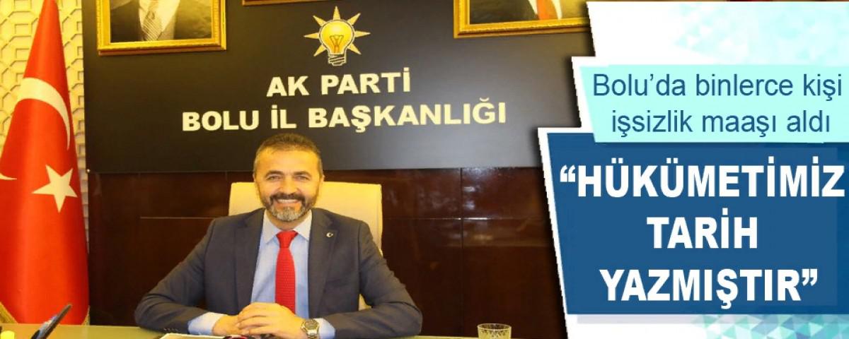 AK Parti Hükümetinin Cumhurbaşkanı Recep Tayyip Erdoğan liderliğinde Pandemi ile mücadelede tarih yazdığını belirten AK Parti Bolu İl Başkanı Nurettin Doğanay; “Kısa Çalışma Ödeneği ile 20 bin sigortalı çalışanımıza maaş desteği sağlanırken 5 Mayıs tarihi ile ilimizde 3213 kardeşimiz, işsizlik maaşını aldı” dedi.