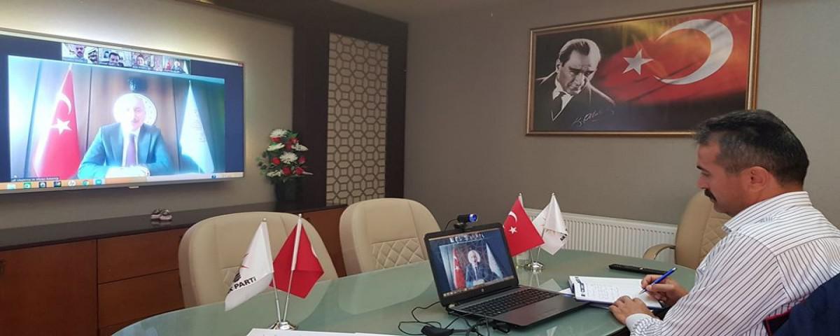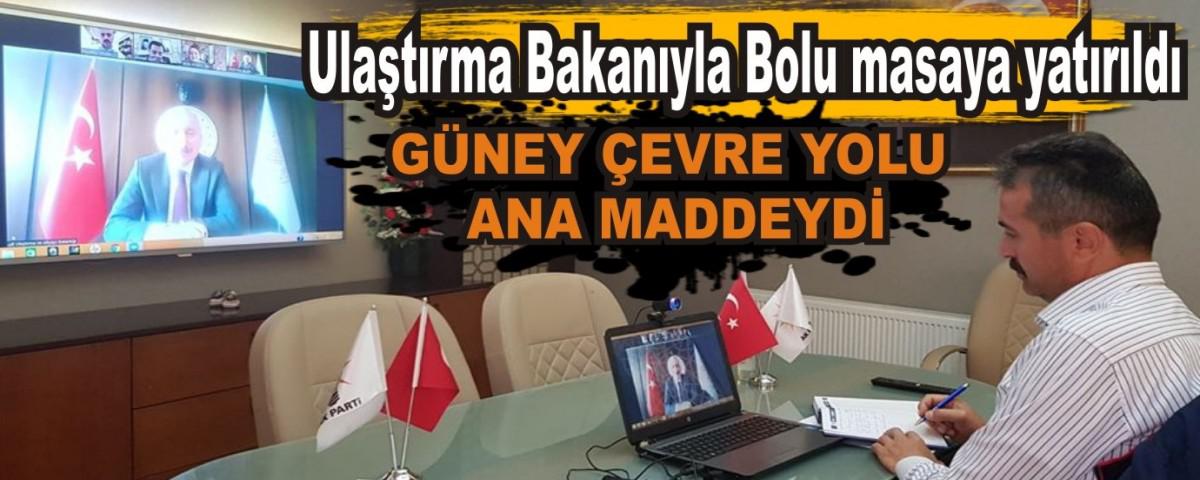 Ulaştırma ve Altyapı Bakanı Adil Karaismailoğlu ile video konferans üzerinden bir toplantı gerçekleştiren AK Parti Bolu İl Başkanı Nurettin Doğanay, Bolu Milletvekilleri Arzu Aydın ve Fehmi Küpçü, Bolu Valisi Ahmet Ümit ve AK Parti Merkez İlçe Başkanı Kazım Konak; Bolu'da yürütülen çalışmaları değerlendirdiler.