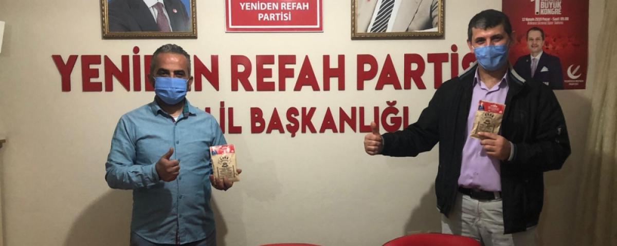Yeniden Refah Partisi Bolu Merkez İlçe Başkanı Faruk Bayrakdar ve teşkilatı hazırladıkları kahveleri Milli Görüş'ün ikinci kırk yılını başlatan Genel Başkan Dr. Fatih Erbakan'ın selamı ile bir kırk yıl daha hatırınızı almaya talibiz. Afiyet olsun.” yazılı mesajının yer aldığı Türk kahvesini COVID19 sebebiyle sosyal mesafe kuralına uyarak dağıttılar.