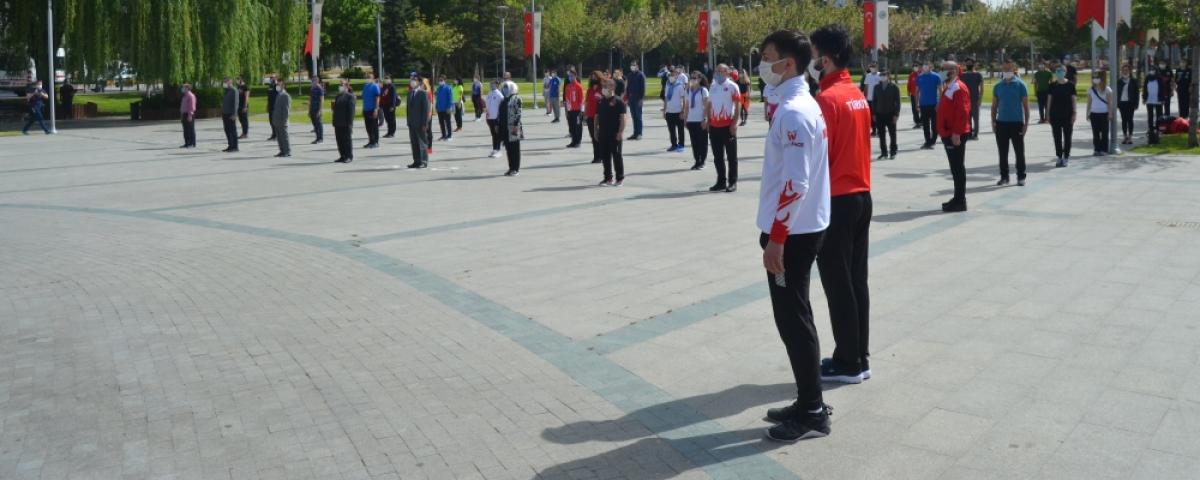 Tören Gençlik ve Spor İl Müdür Şerafettin Çilkara'nın, Atatürk anıtına çelenk sunumu ile başladı. Ardından İstiklal Marşı ve Saygı duruşunda bulunulurken, etkinliklerin telekonferans üzerinden yapılacağı duyuruldu. Erol Değirmenci