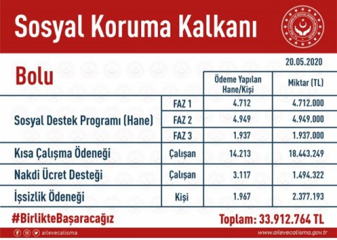 Sosyal Koruma Kalkanı kapsamında Bolu'da yapılan yardımlar aşağıda ki şemada yer almaktadır.