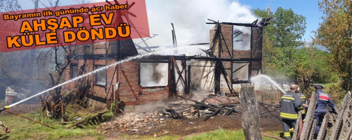 Bolu'da, Ramazan Bayramının ilk sabahında meydana gelen yangın sonucu ahşap ev, kullanılmaz hale geldi.