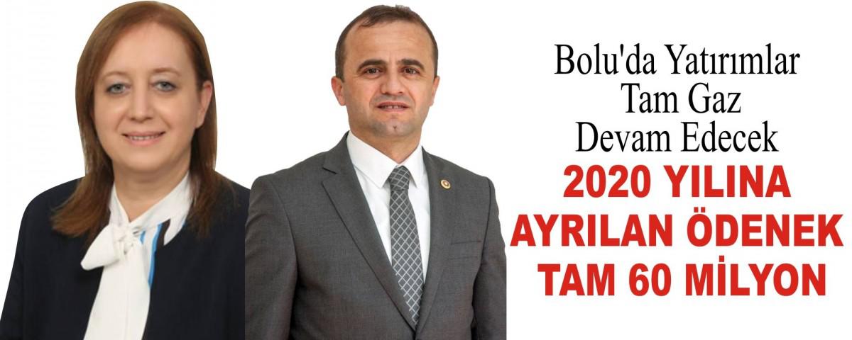 Bolu'da da aynı şekilde yatırımların devam ettiğine dikkat çeken Aydın ve Küpçü; “ Özellikle havaların ısınmasıyla birlikte hız kesmeden yatırımlarımıza devam ediyoruz. 60.000.000 TL'lik ödeneğin yarısını Bolu'muzun dört bir köşesinde kullanılmak üzere asfalt ve yol bakımları için ayırdık. 10.000.000'a yakın kısmını içme suyu tesisleri, su deposu yapımı, isale hattı, şebeke değişimi gibi bir çok alanda kullanacağız. Yaklaşık 3.000.000 TL'yi kanalizasyon ve alt yapı çalışmalarında değerlendireceğiz. Bunlarla birlikte yine köylerimizden gelen talepler ve ihtiyaca göre sosyal tesisler, köy konakları gibi hizmetler için de bütçemizde bir pay ayırdık. Tüm bunlarla beraber çeşitli bakanlıklarımızdan bu zamana kadar aldığımız ve bundan sonra da alacağımız destekler elbette bu sayıların içerisine dahil değil. İnşallah elbirliğiyle bu yıl da Bolu'muza hizmet üretmeye devam edeceğiz.” İfadelerine yer verdiler.