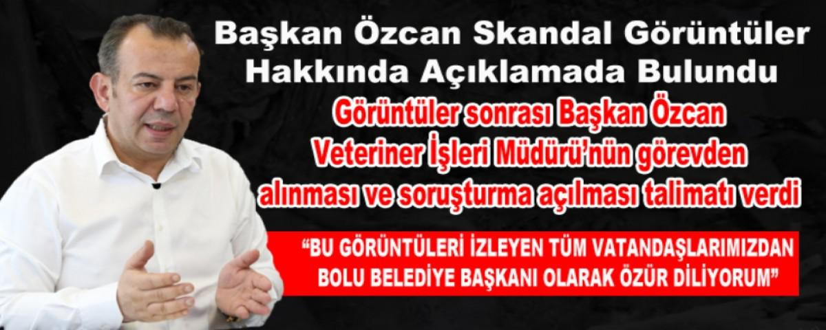 Görüntülerden dolayı büyük üzüntü duyduğunu belirten Özcan, “Bugün ki görüntüleri bende çok ama çok üzülerek izledim. Öncelikle bu olay Bolu Belediyesi'ne hiç yakışmadı. Her şeyden önce Hayvan Hakları Komisyonu kurmuş olan, hayvanlara eziyet etmek başta olmak üzere birçok konuda idari para cezası kararları almış olan bir belediyeyeyiz. Evet, burada Veteriner İşleri Müdürümüzün çok ağır bir ihmali ve kusuru var. Böyle hatalar affedilemez. Ben görüntüleri gördüğüm an Veteriner İşleri Müdürü'nün görevden alınması ve soruşturma açılması talimatını verdim. Bu konunun peşini bırakmayacağım.” dedi.