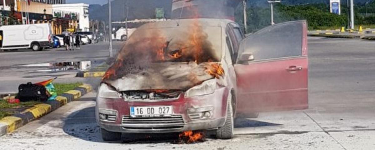 Bolu Dağı Tüneli yakınında bulunan bir alışveriş merkezinin otoparkında, park halinde bulunan A.Ş.'ye ait 16 DD 027 plakalı otomobilin motor kısmında yangın çıktı. Otomobilin yandığını gören vatandaşlar itfaiye ekiplerinden yardım istedi. Olay yerine gelen ekipler otomobilde çıkan yangını kısa sürede söndürdü. Yangında otomobilde büyük çapta hasar oluştu.