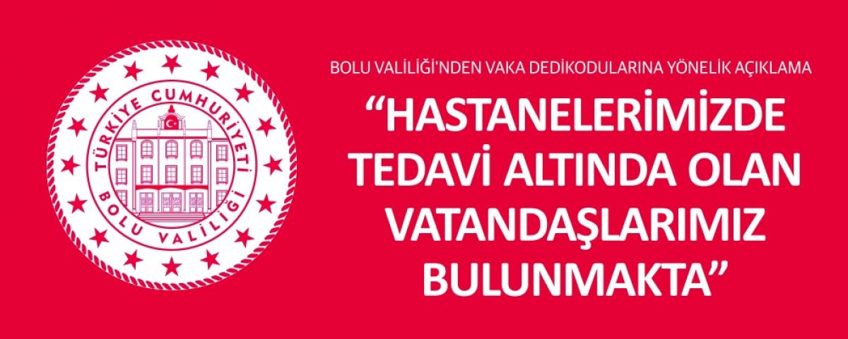 “Bolu'da yerel basında yer alan “BOLU'DA KORONAVİRÜS DEDİKODULARI” başlıklı haberde geçen “Vaka sayılarının paylaşılmadığı, fabrikalarda pozitif vaka çıktığı ve bazı köylerde yaşayan vatandaşların tamamen koronavirüs hastalığına yakalandığı dedikoduları ayyuka çıkmış durumda” şeklindeki ifadelere ilişkin olarak, kamuoyunun bilgilendirilmesini sağlamak üzere, bu açıklamanın yapılmasına ihtiyaç duyulmuştur.Ülkemizde koronavirüs vakasının göründüğü ilk günden itibaren bugüne kadar ülkemiz genelindeki vaka sayıları, yoğun bakım ve entube sayıları sadece Sağlık Bakanımız tarafından kamuoyuyla paylaşılmaktadır”
