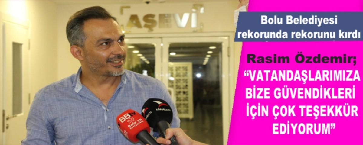 Bolu Belediyesi bu Kurban Bayramında da bağışta bulunan 370 hisse ve 4 buçuk ton kurban payı ile Bolulardan büyük destek gördü. Bolu Belediye Başkanlığı Sözcüsü ve Belediye Başkan Yardımcısı Rasim Özdemir, bu yıl kendi rekorlarını egale ettiklerini söyleyerek “Ben bize güvenin tam olduğunu söylemiştim. Gerçekten gördük ki insanlar bize güveniyorlar. Ben tüm vatandaşlarımıza bize güvendikleri için çok ama çok teşekkür ediyorum.” diye konuştu.