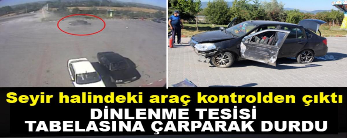Kaza, saat 10.00 sıralarında Yeniçağa ilçesi Ataköy mevkiinde meydana geldi. Bolu'dan Zonguldak istikametine seyir halinde olan Ramazan Çubukcu yönetimindeki 35 AL 3843 plakalı otomobil kontrolden çıkarak yol kenarındaki bir dinlenme tesisinin tabelasına çarptı. Çarpmanın etkisiyle tabelayı deviren otomobil dinlenme tesisinin park alanına kadar savrulduktan sonra durabildi. Otomobil sürücüsü ve araçta bulunan eşiyle 2 çocuğu kazadan yara almadan kurtuldu. Yaşanan kaza anı olay yerinin gerçekleştiği dinlenme tesisinin güvenlik kameralarına yansıdı.