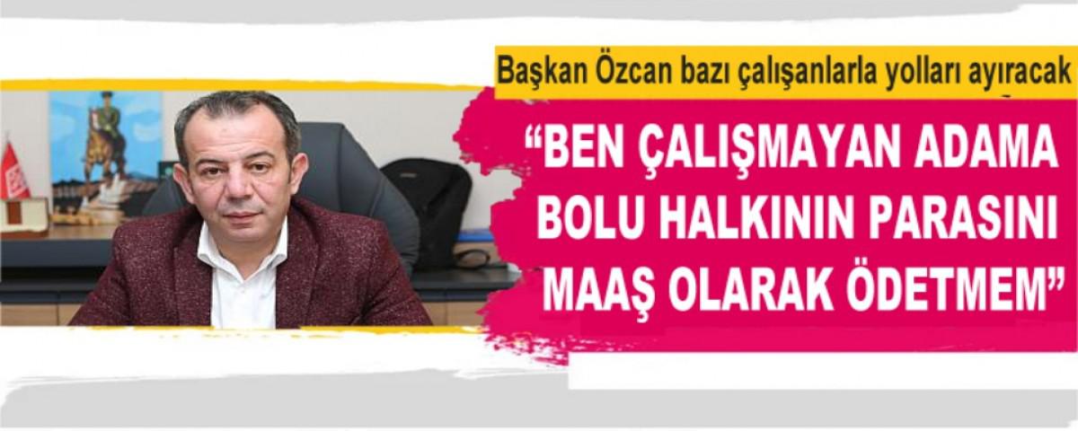Bolu Belediye Başkanı Tanju Özcan, Belediyede tüm uyarılara rağmen bazı çalışanlarla yolları ayıracaklarını belirtti. Mali disiplini oturtabildiklerini ancak idari disiplini ise oturtmanın o kadar kolay olmadığını belirten Başkan Özcan, “Ben çalışmayan adama Bolu halkının parasını maaş olarak ödetmem demiştim ve uyarmıştım. O sürenin sonunda da uyarılara riayet etmeyenlerle yollarımızı ayıracağız” ifadelerini kullandı.