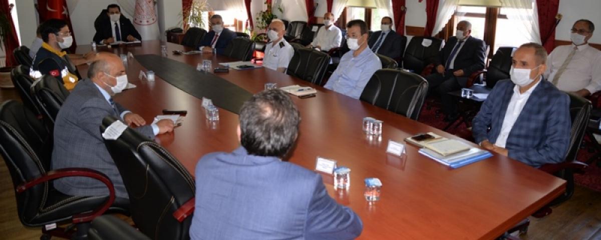 Koronavirüs salgını ile mücadele kapsamında ilimizde yürütülen çalışmaların değerlendirildiği toplantıda, salgınla mücadelenin en etkili şekilde sürdürülmesi için alınması gereken ilave tedbirler görüşüldü.