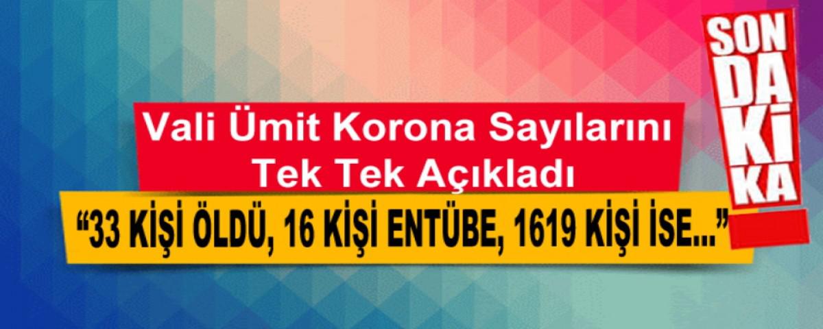 1619 hastanın evlerde izalasyon altında olduğunu belirten Vali Ümit, 16 hastanın entübe altında olduğunu 4 hastanın ise yoğun bakımda tedavi altında olduğunu belirtti.