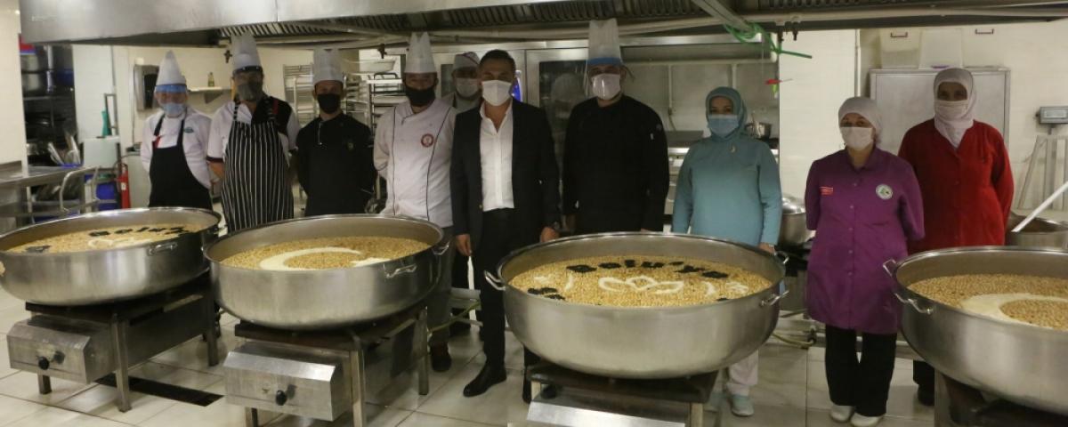 Mübarek Muharrem ayı dolayısıyla Bolu Belediyesi Kültür ve Sosyal İşler Müdürlüğü'ne bağlı aşevi aşçıları tarafından 10 bin kişilik aşure hazırlandı.
